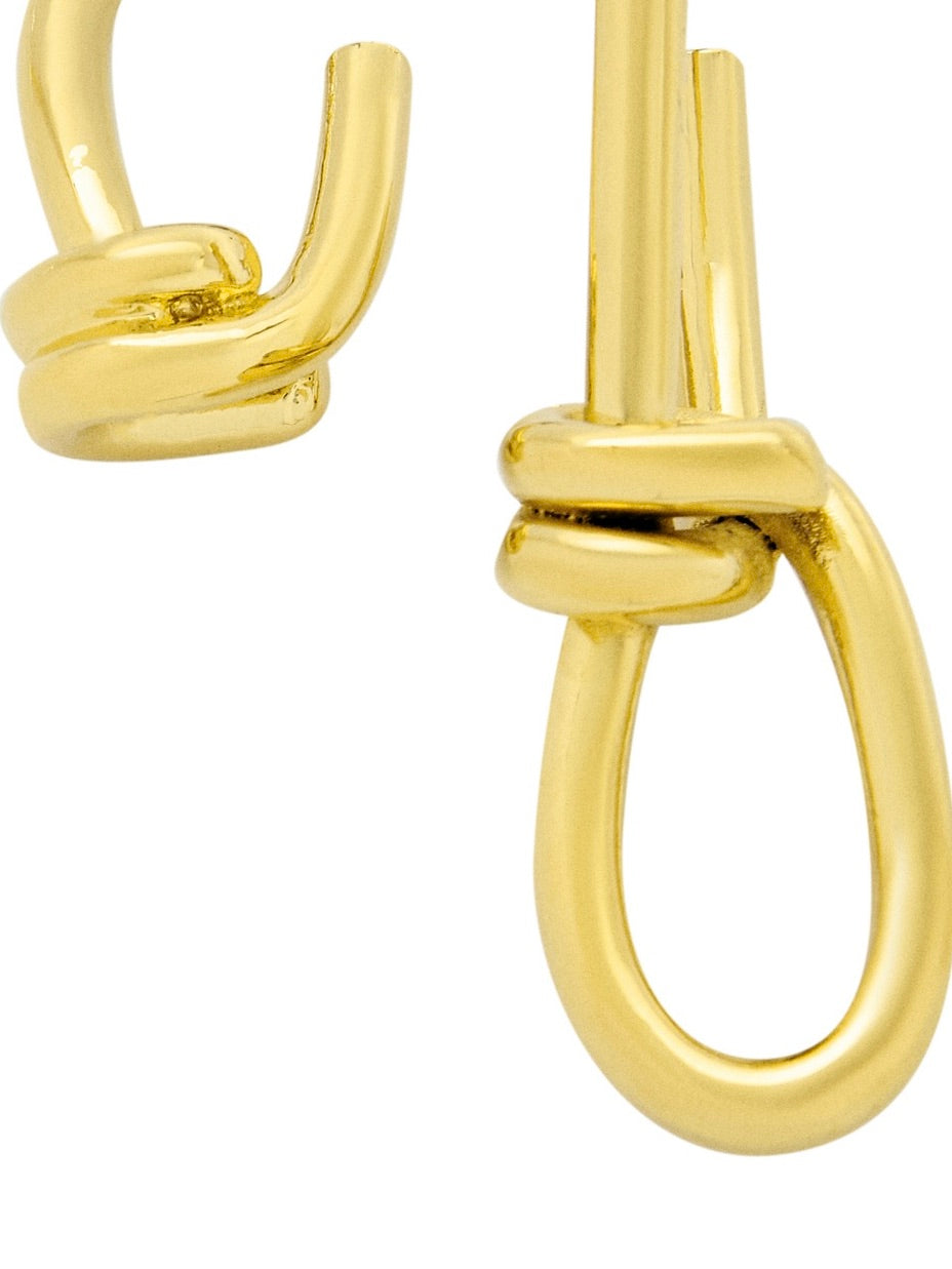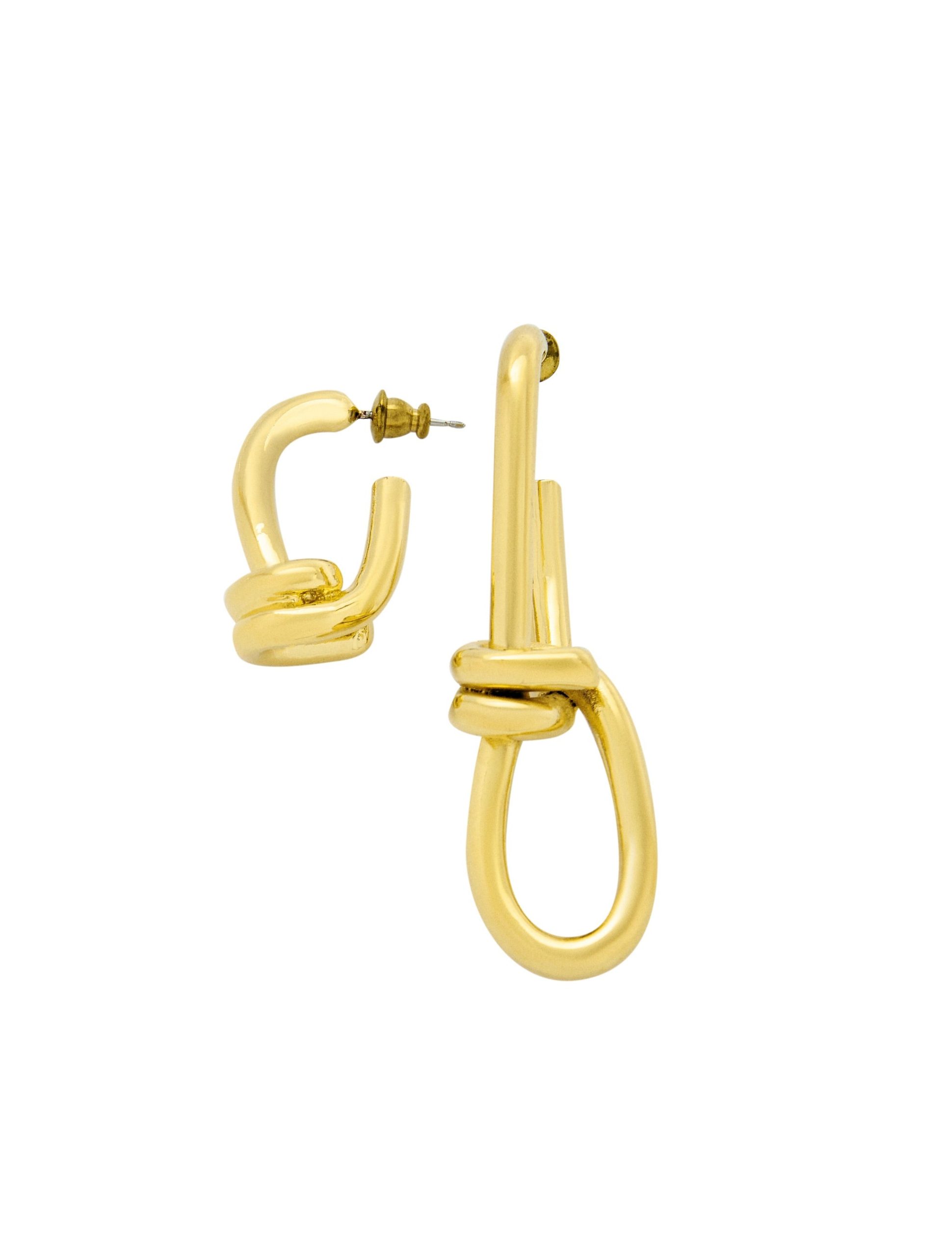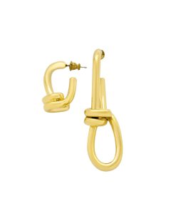 Rosetta Getty’s custom twisted chain earrings are designed with radiant 14K gold plating. The durable brass earrings boasts glittery textural links and asymmetric design.
