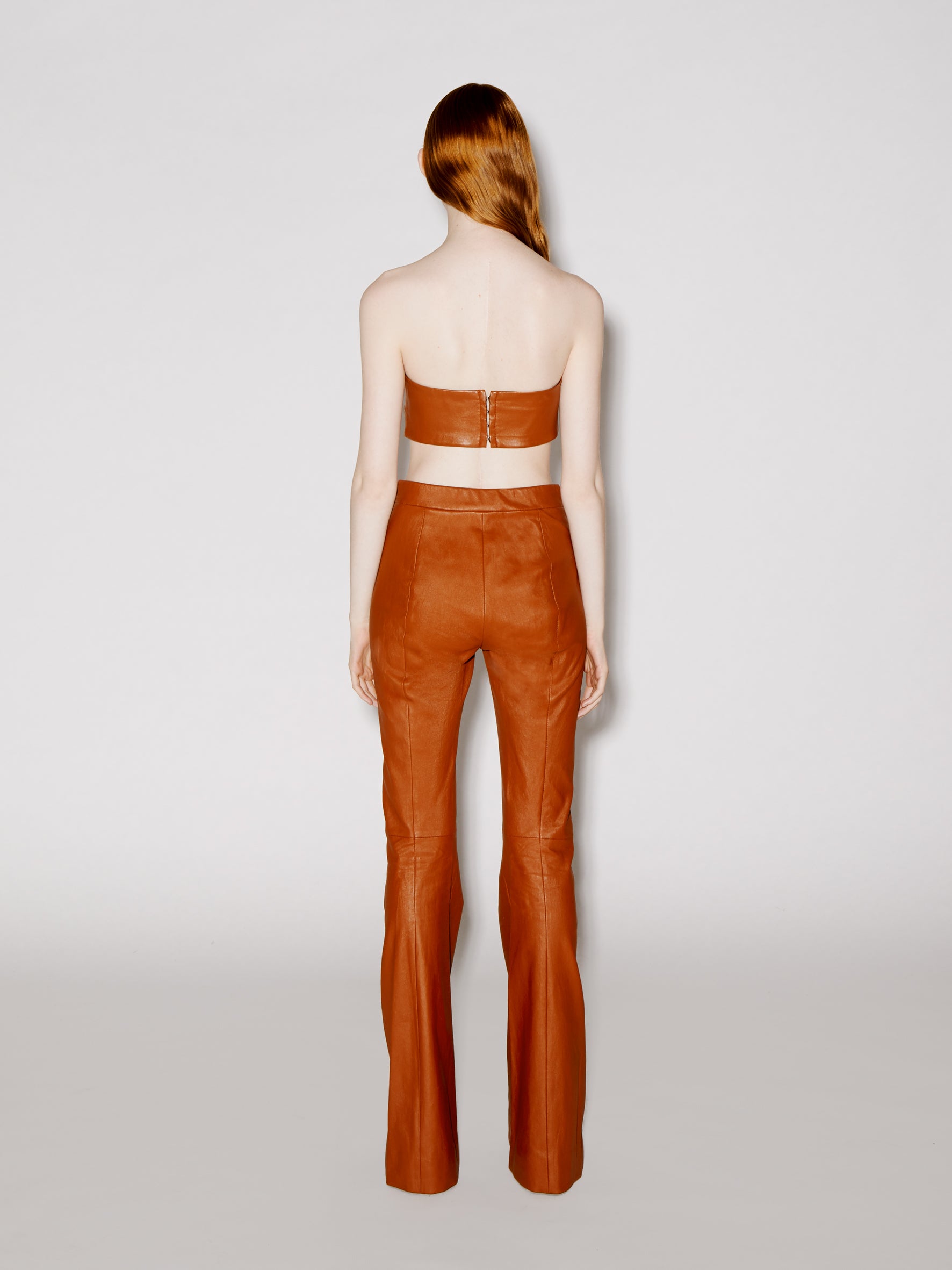 Designed with a classic ‘90s-inspired bandeau shape, this versatile bra top is elevated by its leather construction. Soft, stretch lambskin wraps around the bust, offering a convertible silhouette that can be worn under or over myriad styles.