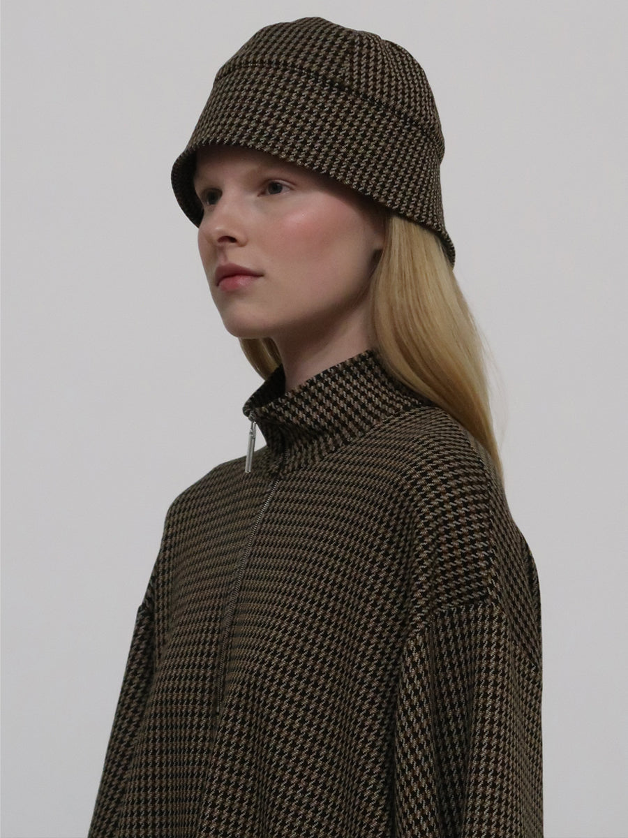 Updating Rosetta Getty’s signature hat silhouette, Pre-Fall 24’s Bucket Cap features a structured top with a short brim to create a cloche effect. Hinting at 1920’s styling and dressing, it features in the season’s exclusive Houndstooth Interlock Jacquard.