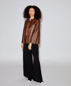 Marrying utilitarian sensibility with iconic tailoring, this collarless jacket has a versatile look. Crafted from popular Stretch Plongé, the buttery-soft leather lends wearability to this refined and structured style; metallic buttons impart a sophisticated finish.