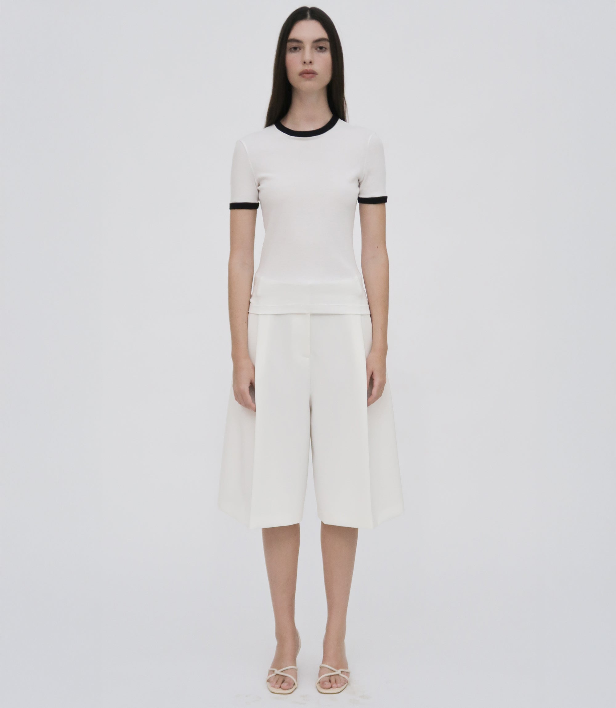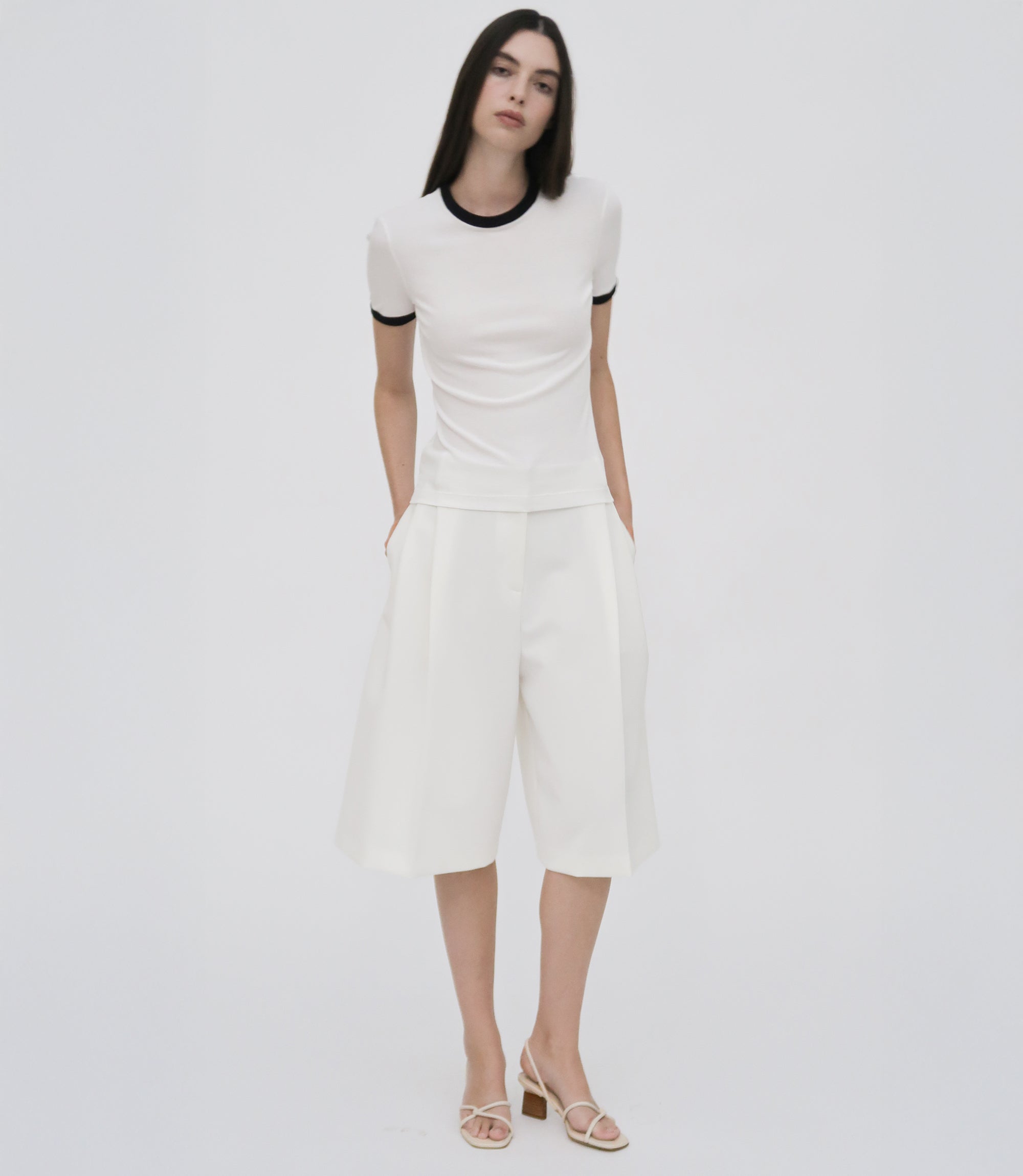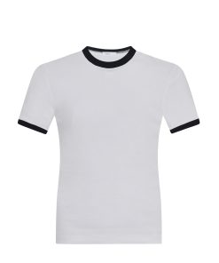 Bringing vintage-inspired design to our Mercerized Cotton Rib Jersey capsule, the ringer-style Contrast Rib T-Shirt spotlights binding in a different color for a pop finish. It is designed with a fitted crewneck silhouette and embellished with an embroidered logo signature just below the neck.