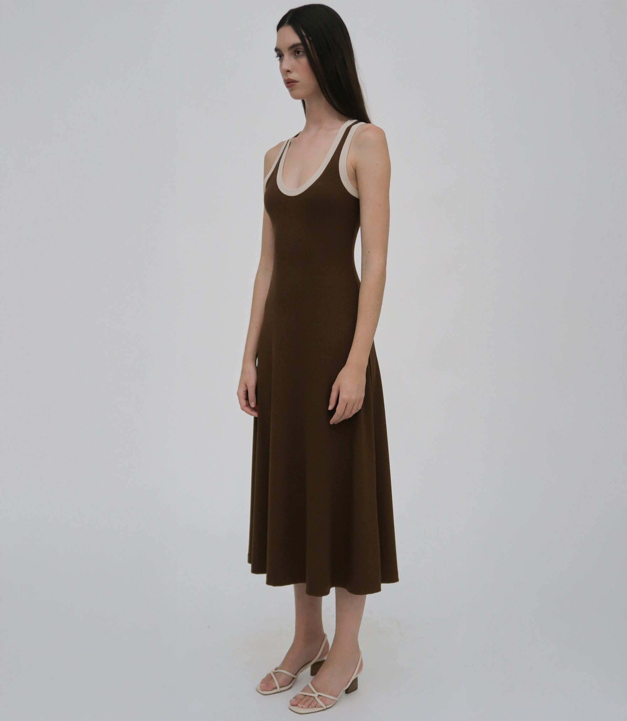Flattering the silhouette with a fitted bodice and A-line skirt, the Contrast Rib Tank Dress complements the other casual styles in our Rib Jersey capsule. Alternative binding lends a pop finish to the neckline, which is embellished with an embroidered logo signature.