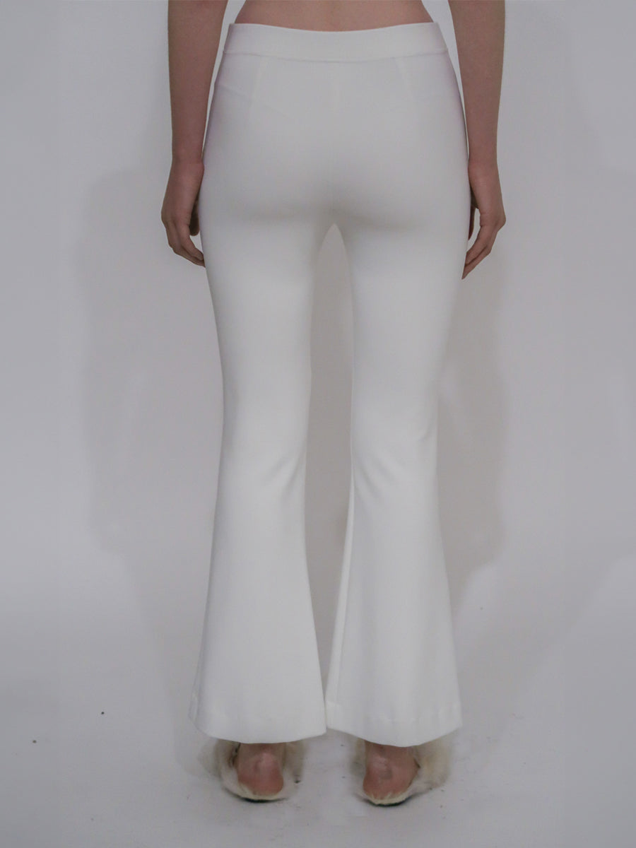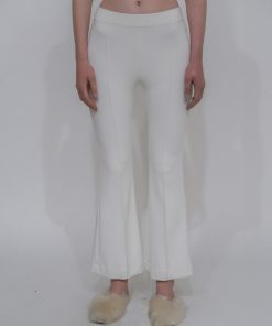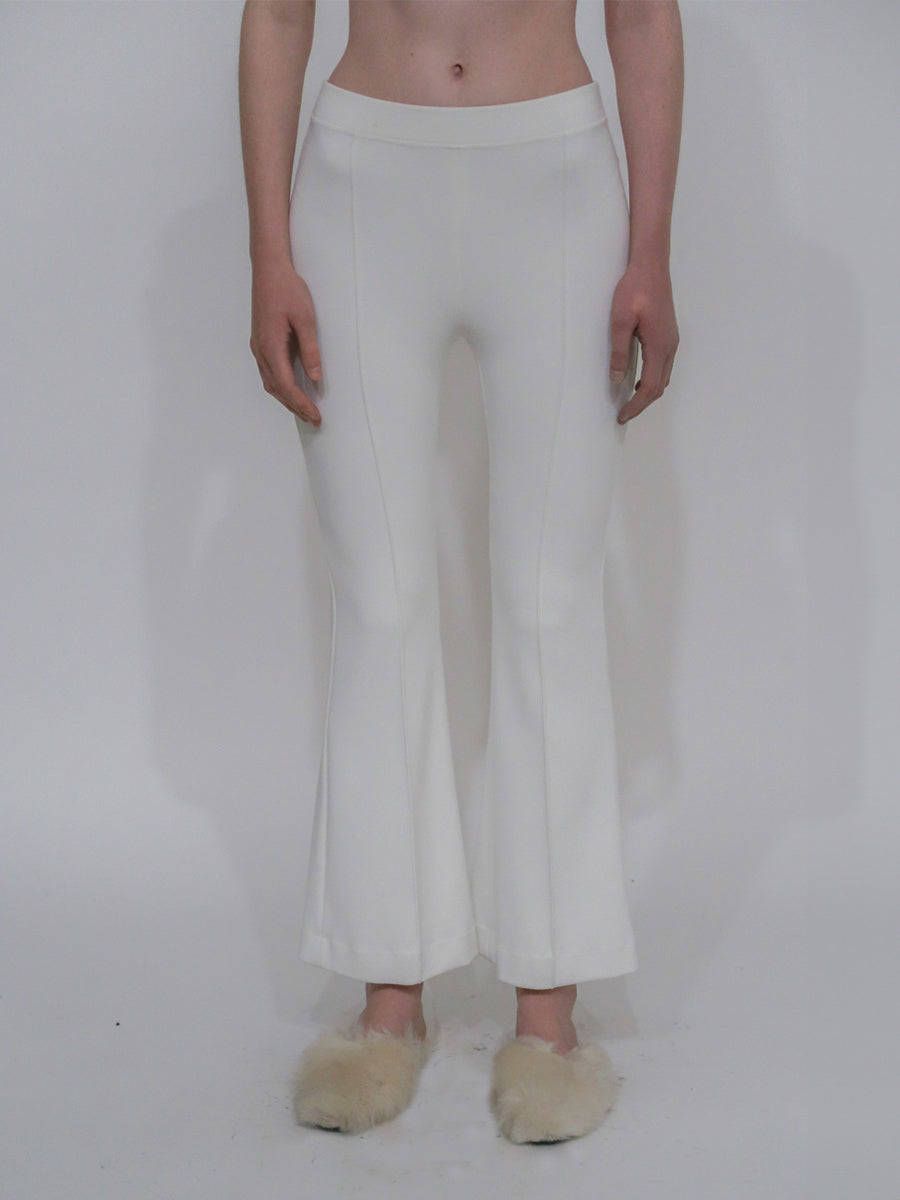 A go-to style in the Scuba Doubleknit, this signature pant is designed to flatter the body with a mid-rise and flared leg. The sleek fabric and elasticized waist impart natural ease to the cropped silhouette, finished with pintuck seaming to create a flattering line and an elongating effect.