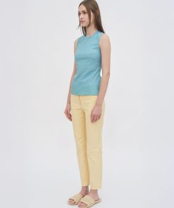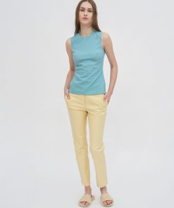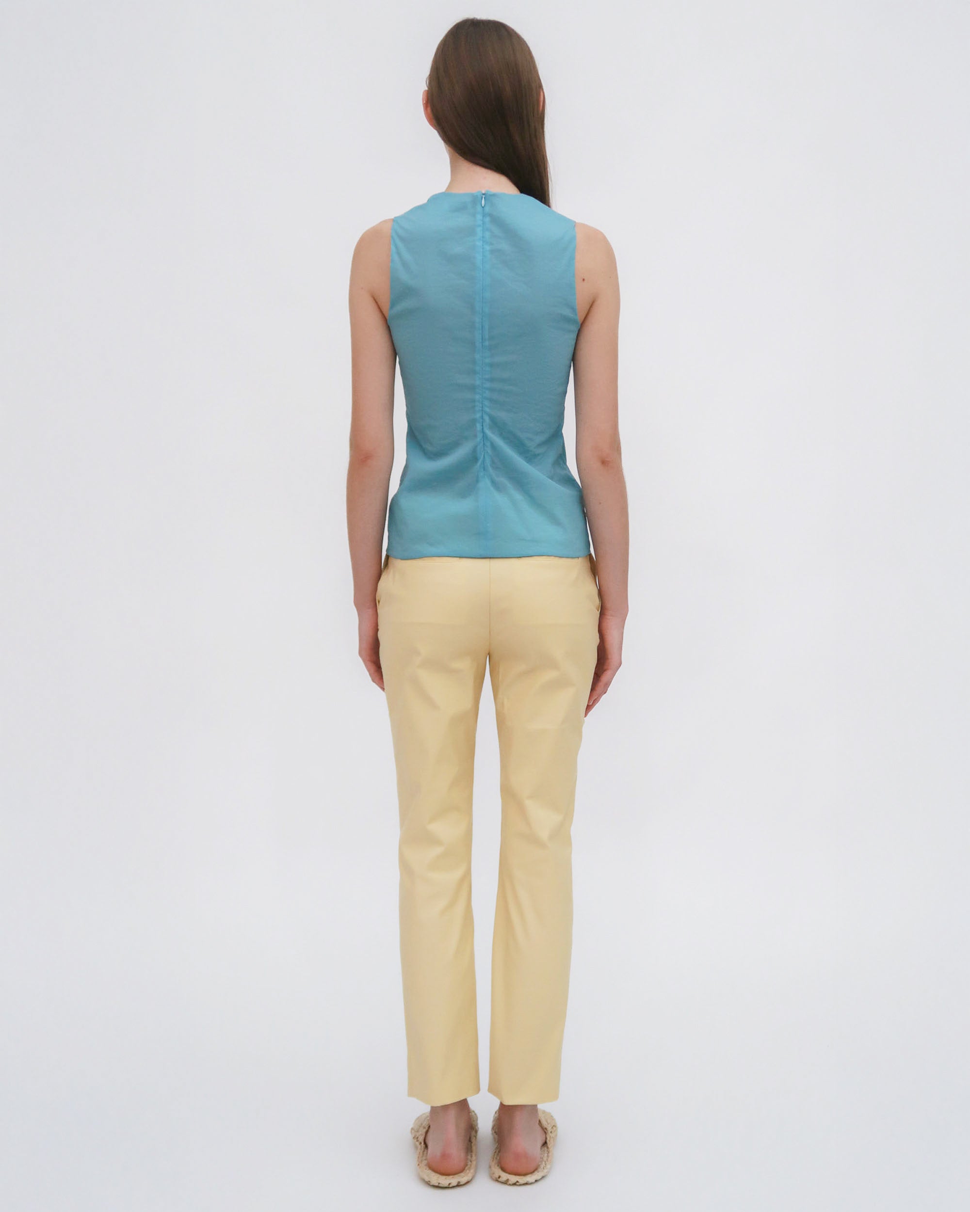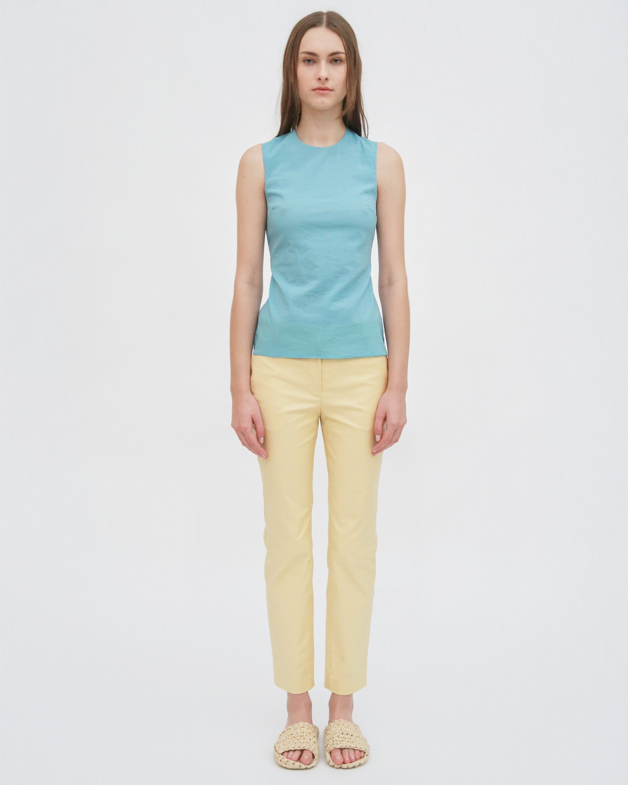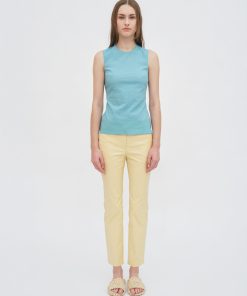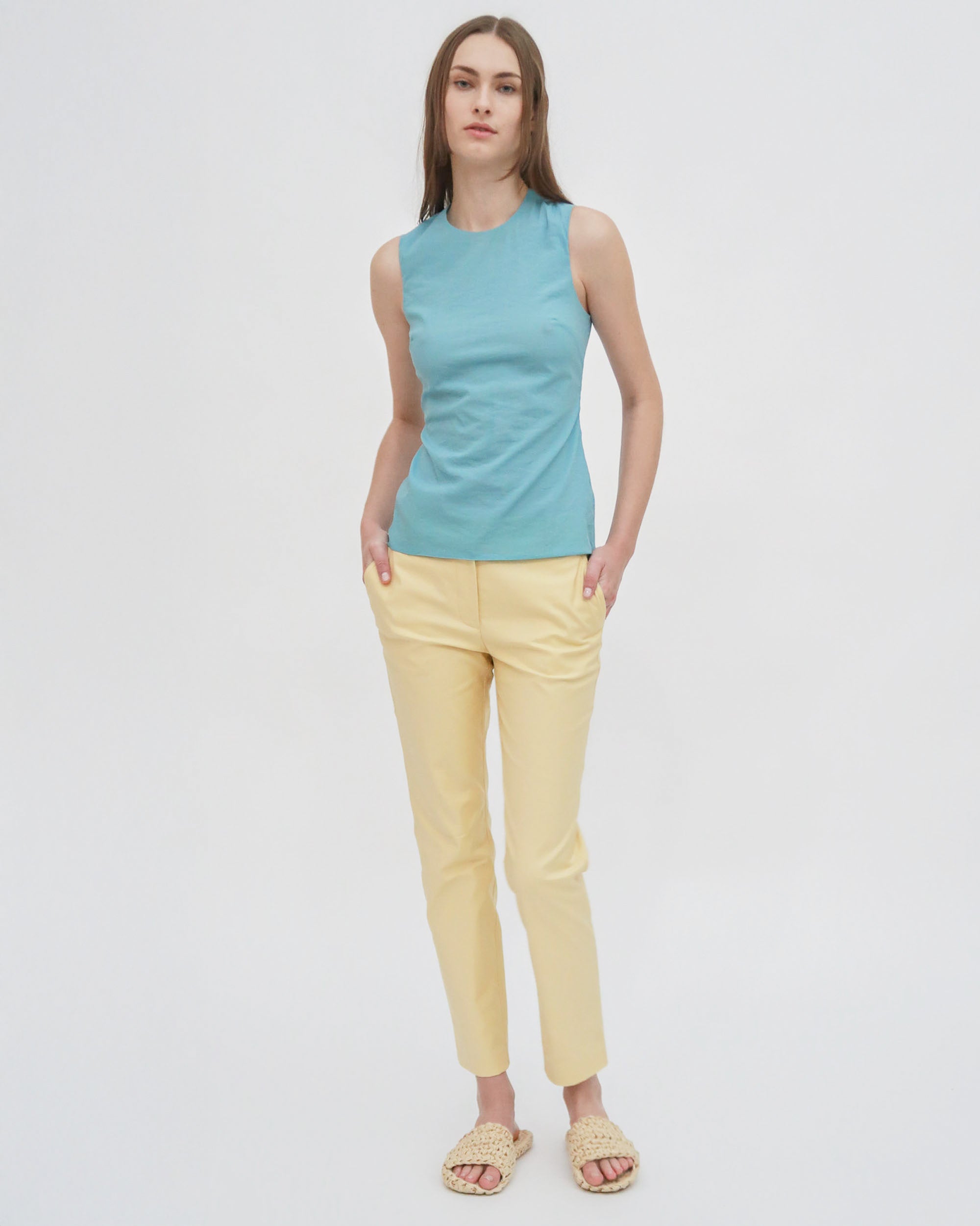 The Stretch Cotton Shantung is a crisp and structured cotton blend that offers newfound ease and comfort to tailored styles. It offers wearability to Rosetta Getty’s signature pant silhouettes.