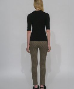 An exclusive fabrication for the season, the Houndstooth Interlock Jacquard is similar to our Interlock Jersey with a slightly slick hand and added elastic to contour the body. It’s produced by an Italian mill certified for its sustainable practices by the Associazione Tessile e Salute (Health and Textiles Association) and Forest Stewardship Council (FSC), which uses viscose produced using sustainably sourced and certified FSC wood pulp.