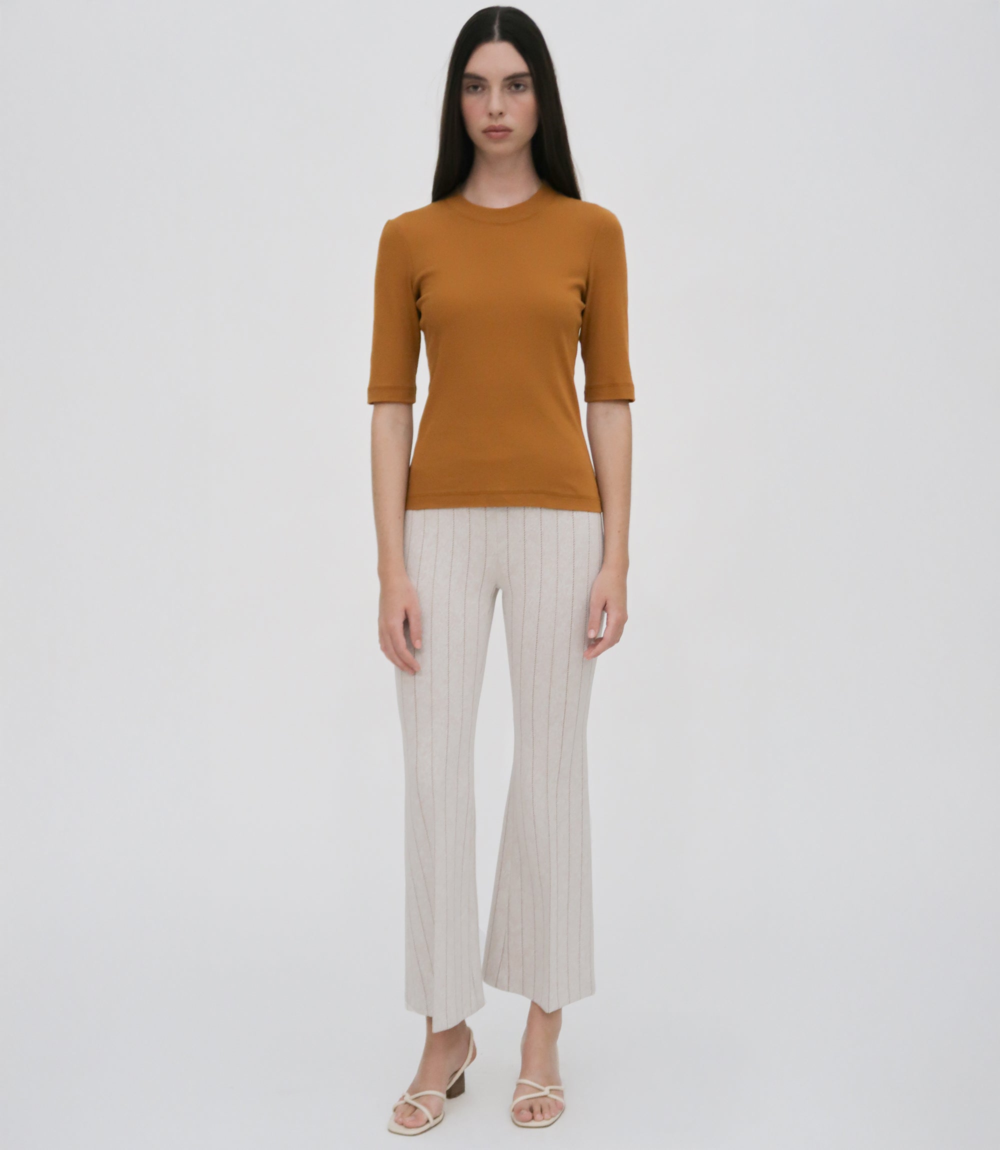 Rosetta Getty’s sought-after Mercerized Cotton Rib Jersey features a double mercerization process that gives the soft Japanese fabric a beautiful and unique feel that is both clean and fluid.