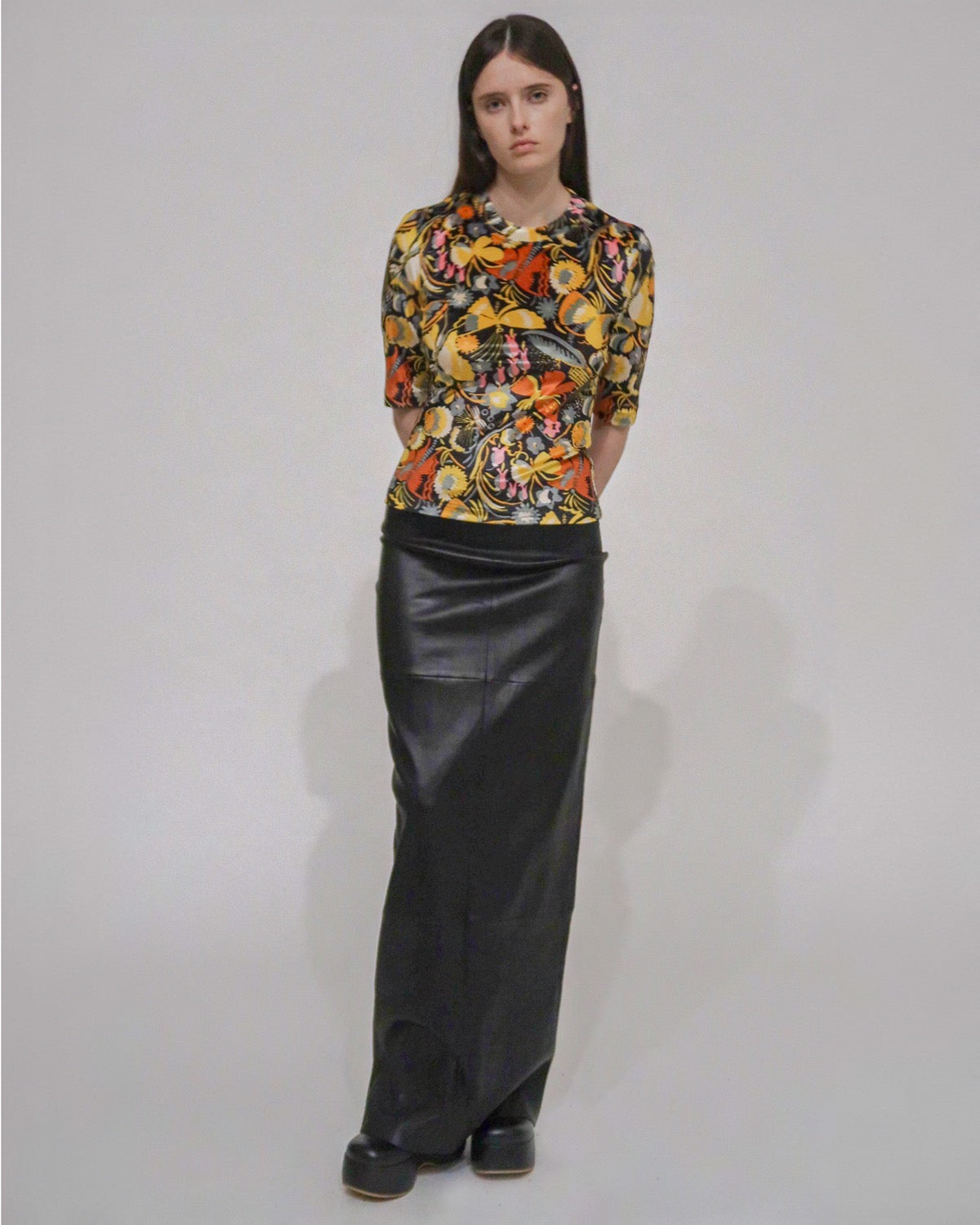 Rosetta Getty’s signature flattering top, an elevated version of the wardrobe-essential crewneck T-shirt, is cut close to the body. Featuring in the season’s bold Butterfly Floral Velvet Jersey, it has a versatile silhouette with fitted sleeves that hit just above the elbow.