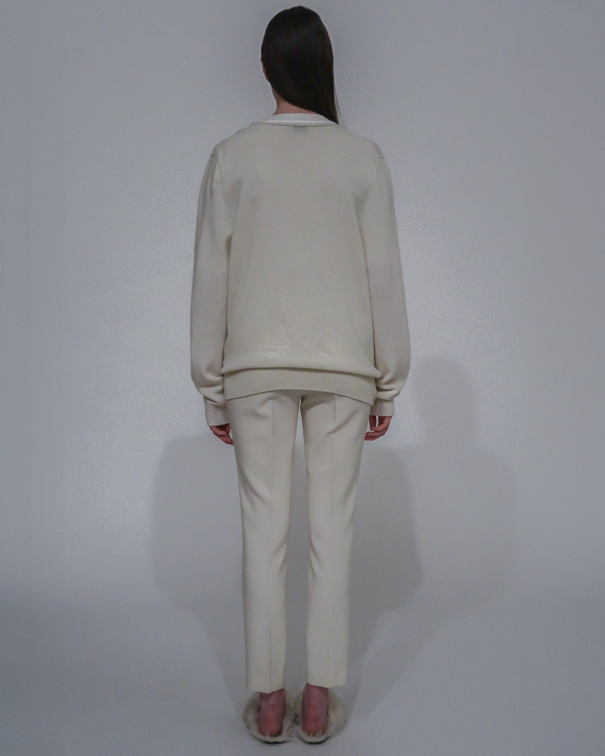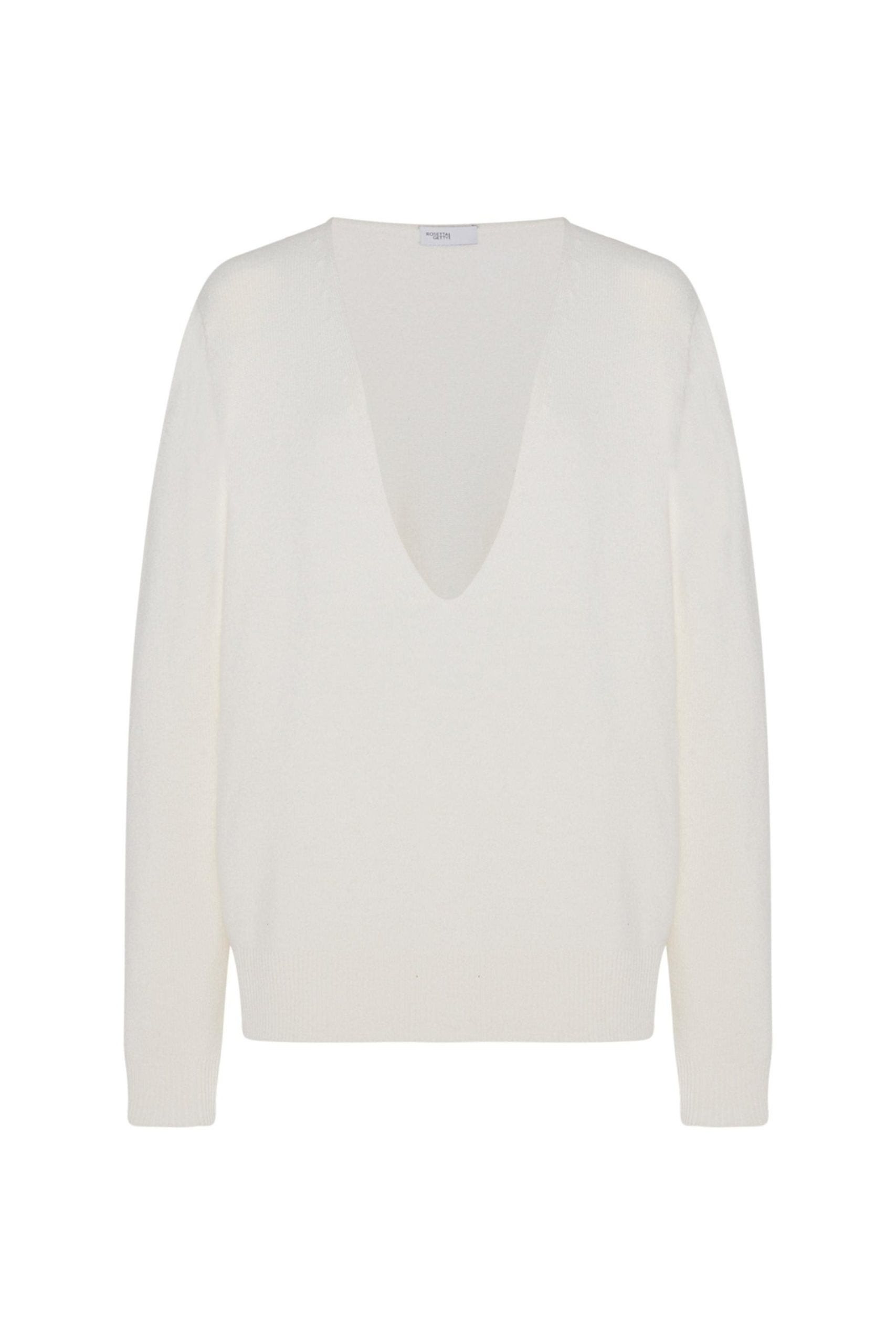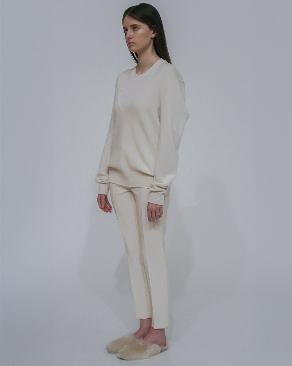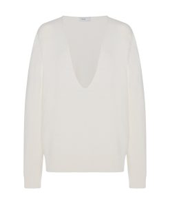Knit to a minimalist silhouette, this refined sweater rethinks the essential V-neck with a deeper unfinished neckline. Knit of soft wool and cashmere, it is ideal for layering underneath tailoring or over both jersey tees and tailored shirting.