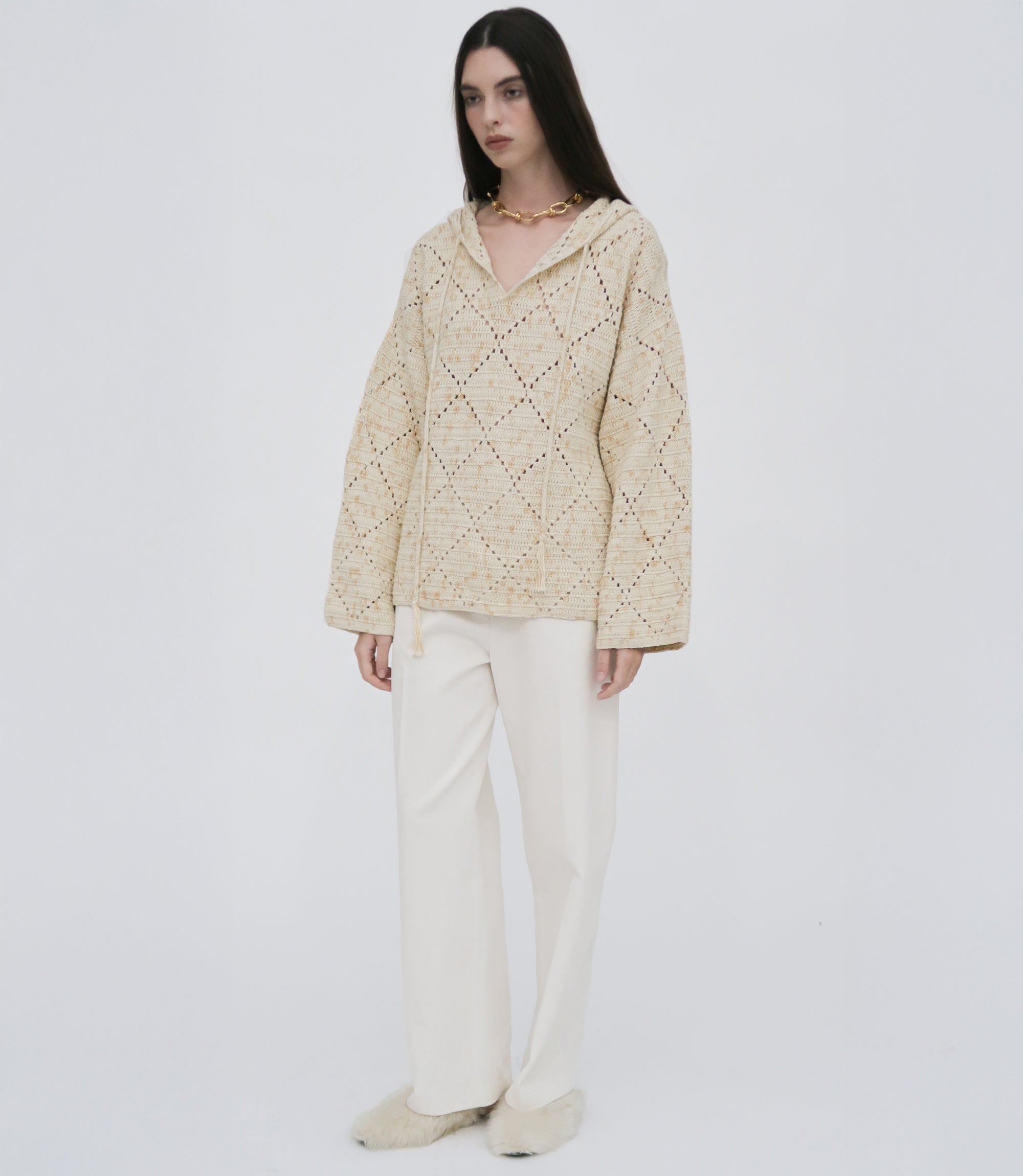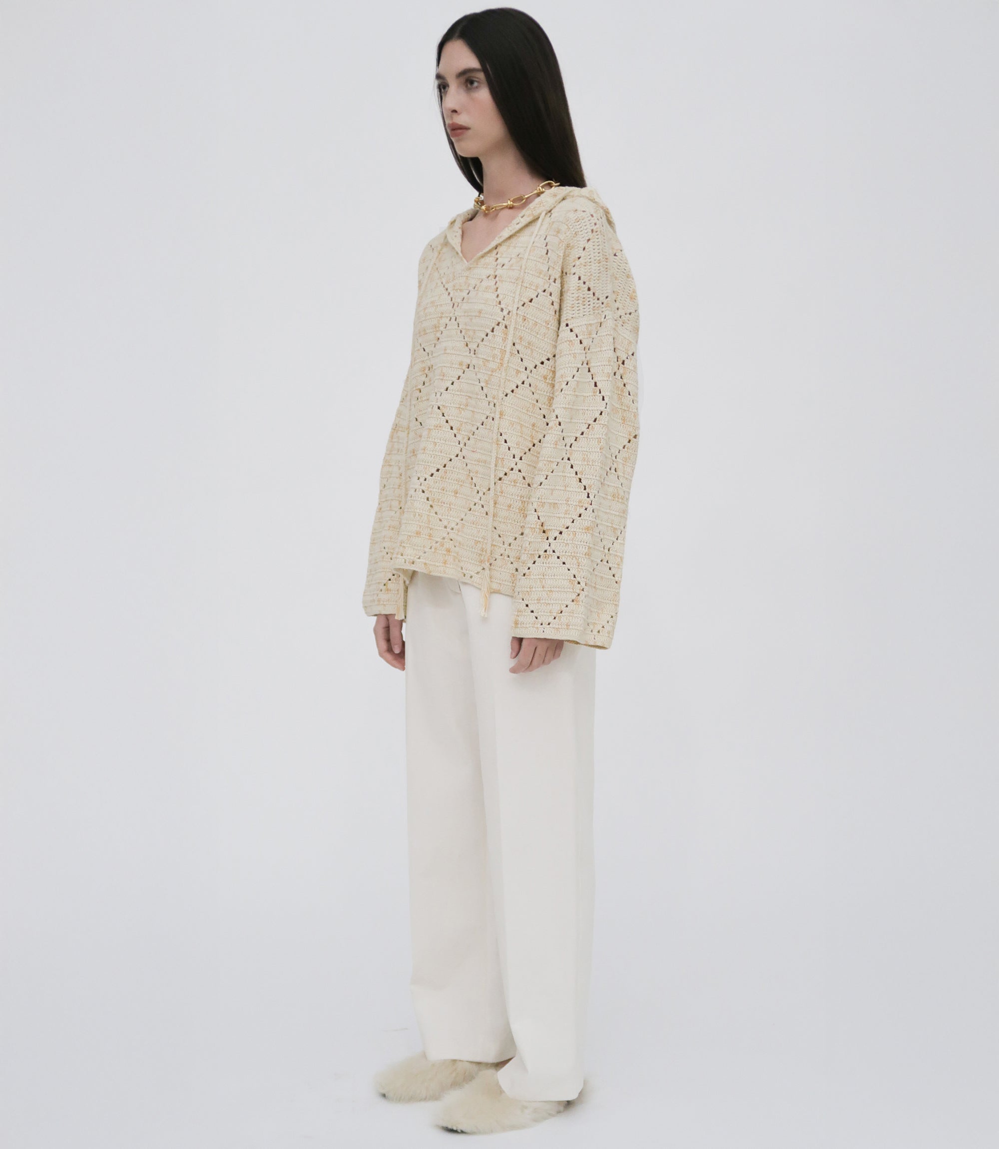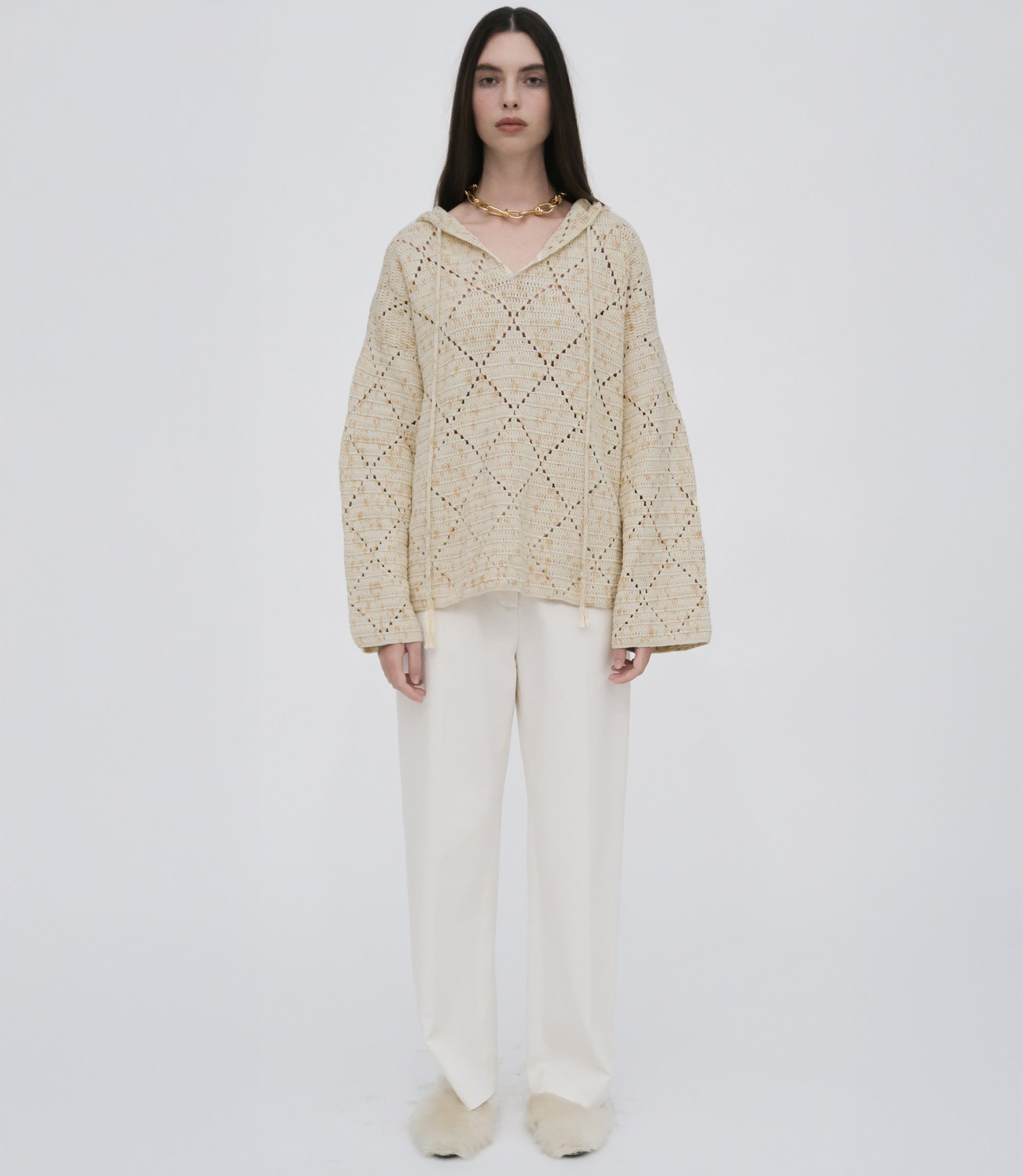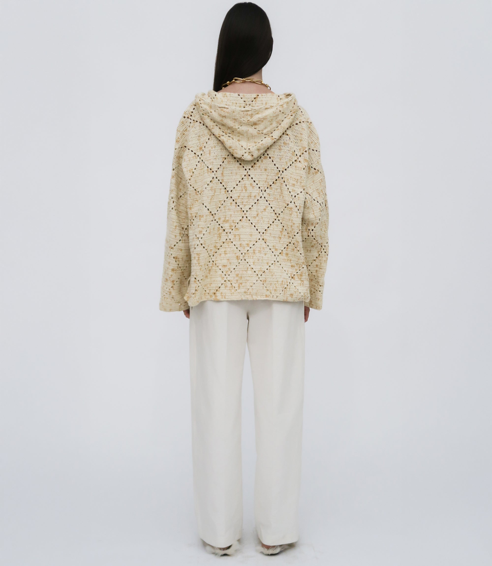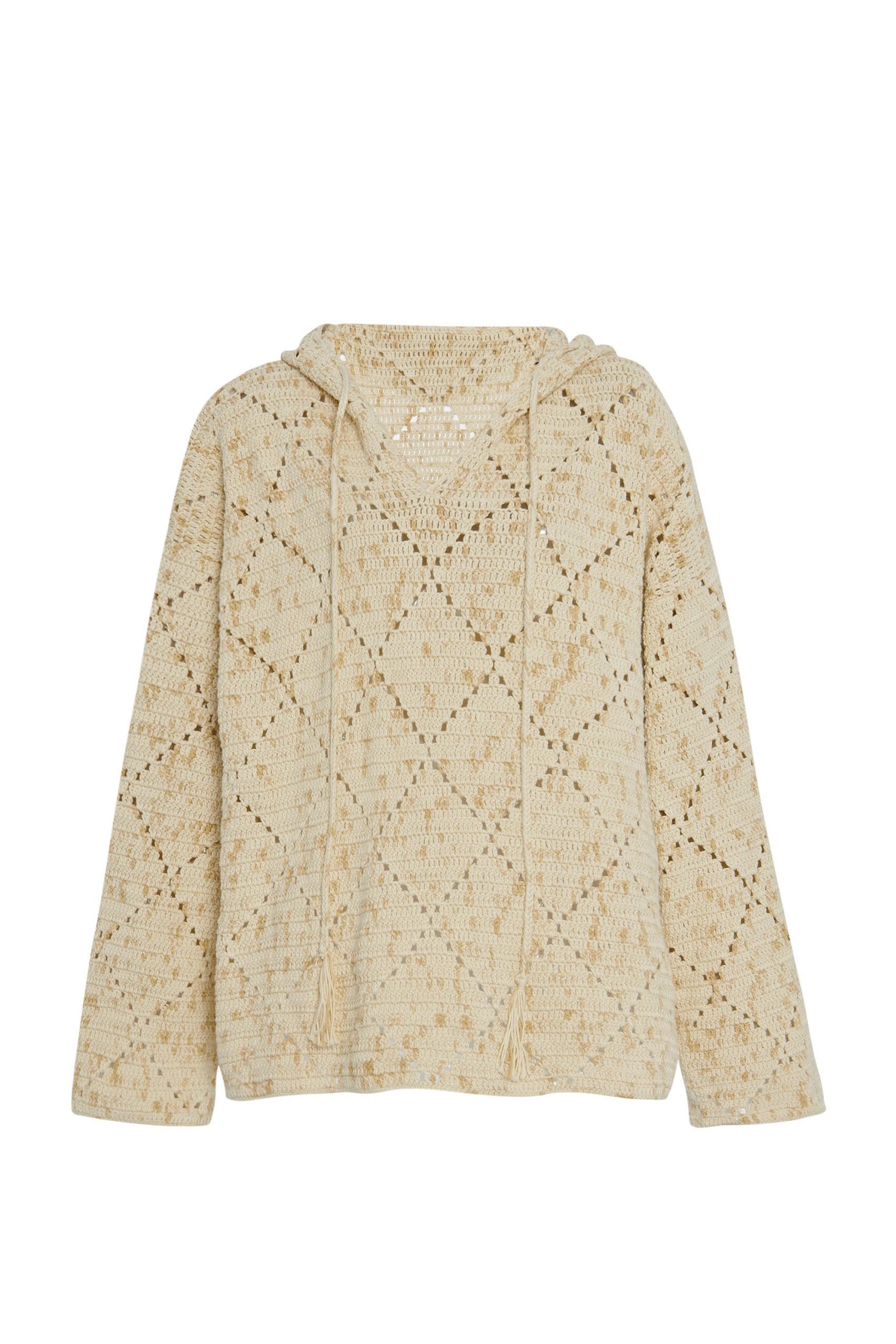 Spotlighting hand-dyed Peruvian Pima cotton yarn—commonly considered the best cotton available— our seasonal Baja-style hoodie is supremely soft. Designed with an oversized fit, the style is crocheted by hand with a pointelle diamond pattern and finished with a relaxed drawstring hood.