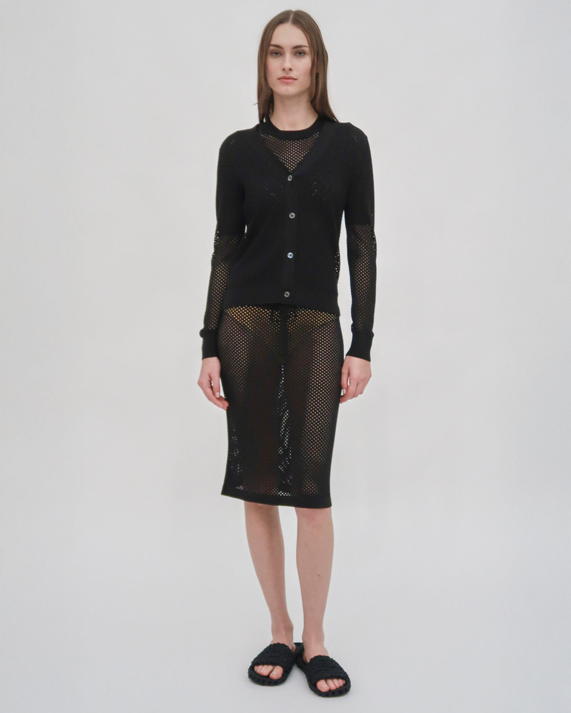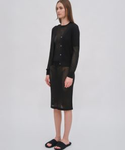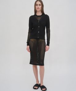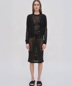 Rosetta Getty Women’s Mesh Pointelle Cardigan | Black