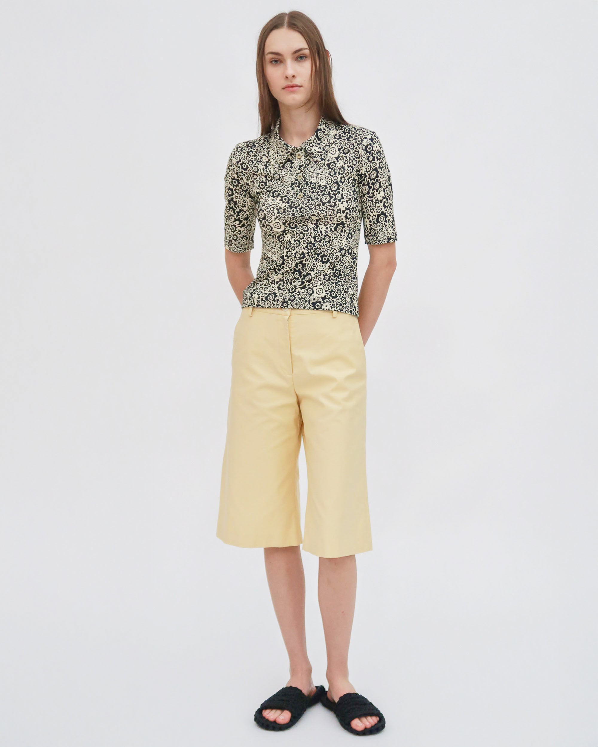 The seasonal two-tone Floral Squiggle pattern lends complexity to Rosetta Getty’s signature polo shirt. Crafted of stretch cotton jersey, it is fitted through the bodice with slim elbow-length sleeves.