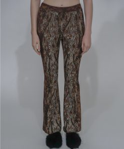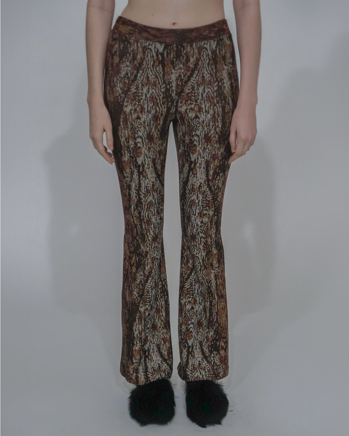 Crafted in the seasonal Woodgrain Interlock Jacquard, this signature pant is designed to flatter the body with a mid-rise and flared leg. Rosetta Getty’s special fabric and the elasticized waist impart ease to the cropped silhouette.