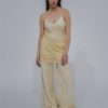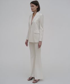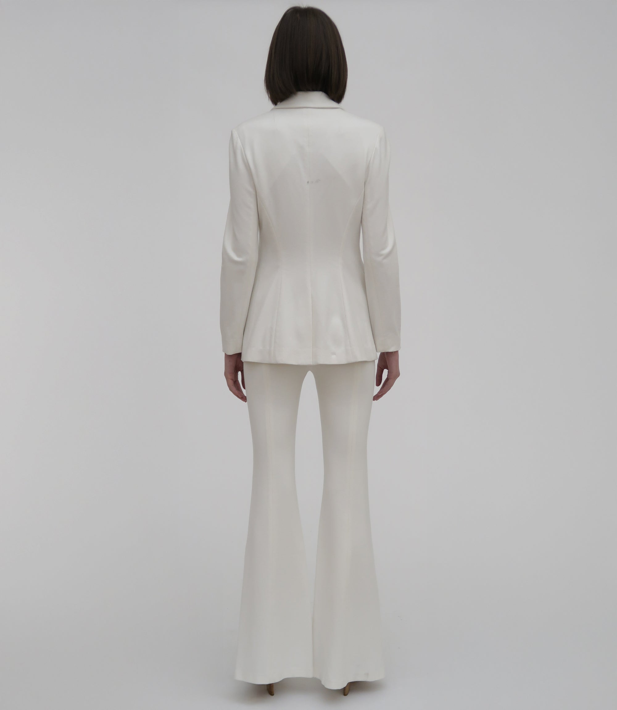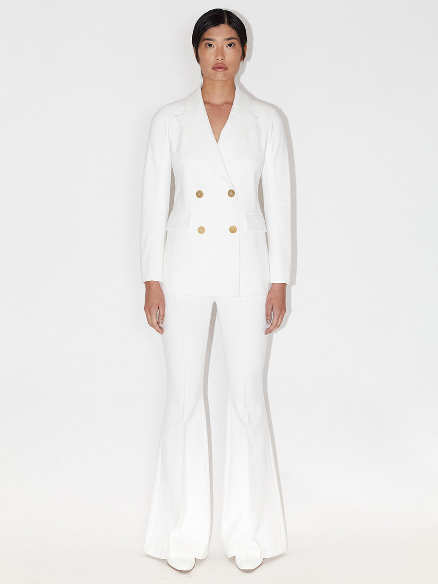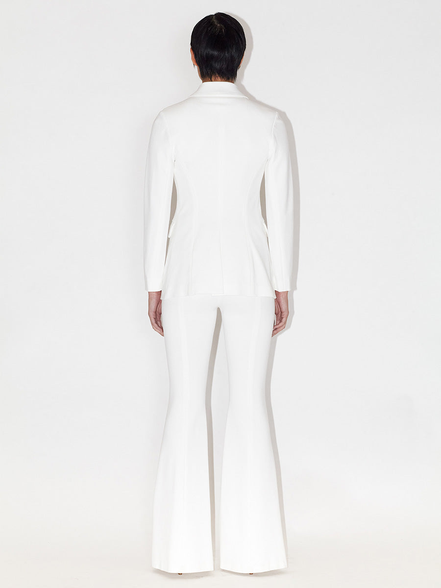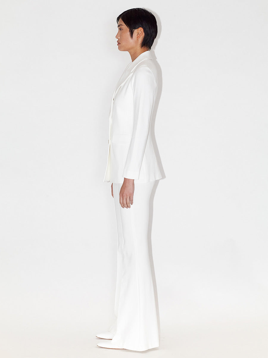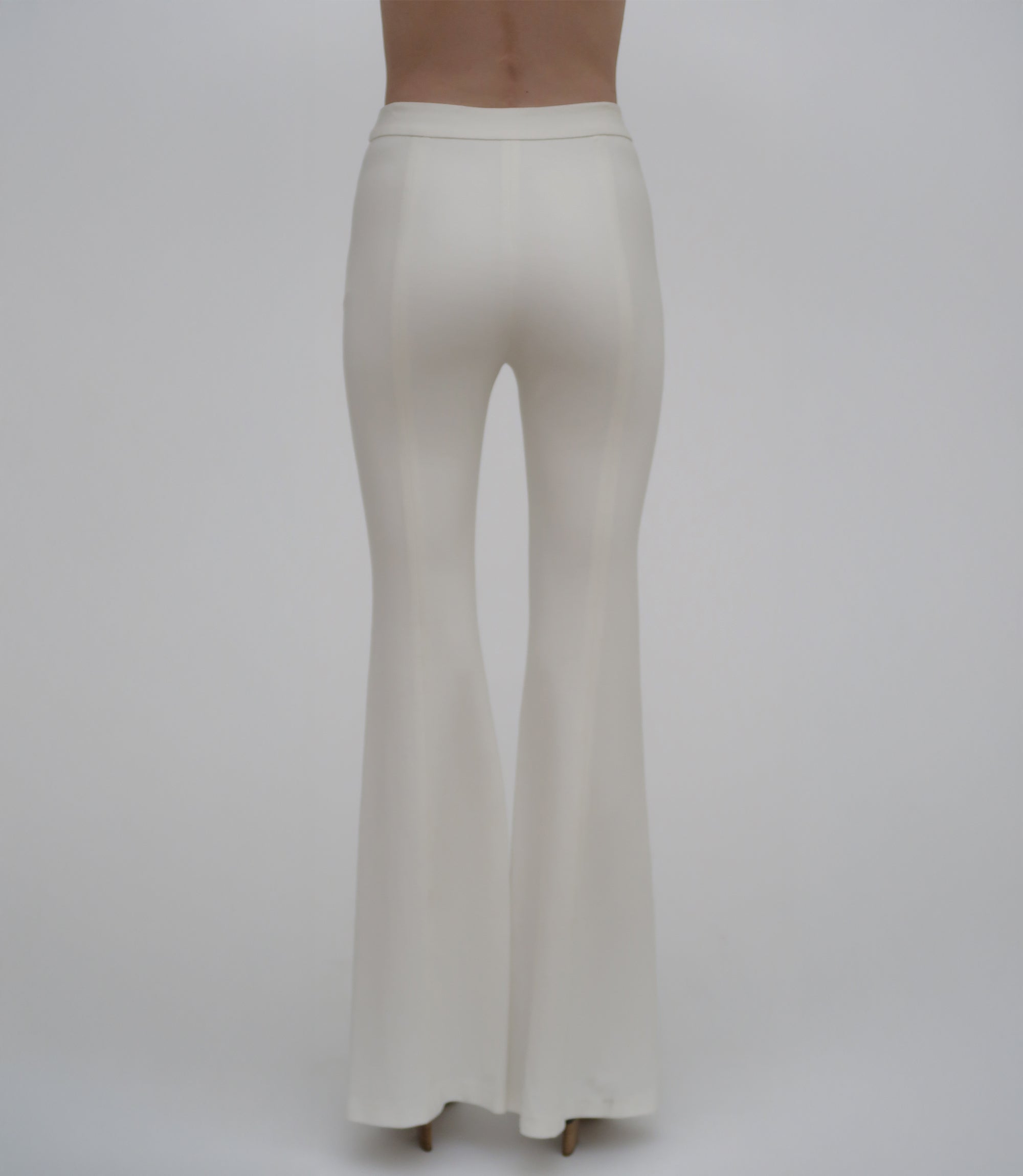 Crafted to flatter and elongate the body, this fluid pant flares gently from the knee, creating a long and lean silhouette from hip to hem. Pintuck seaming down the front and back lengthens further, while the elasticized mid-rise waist enhances the ease of wear.