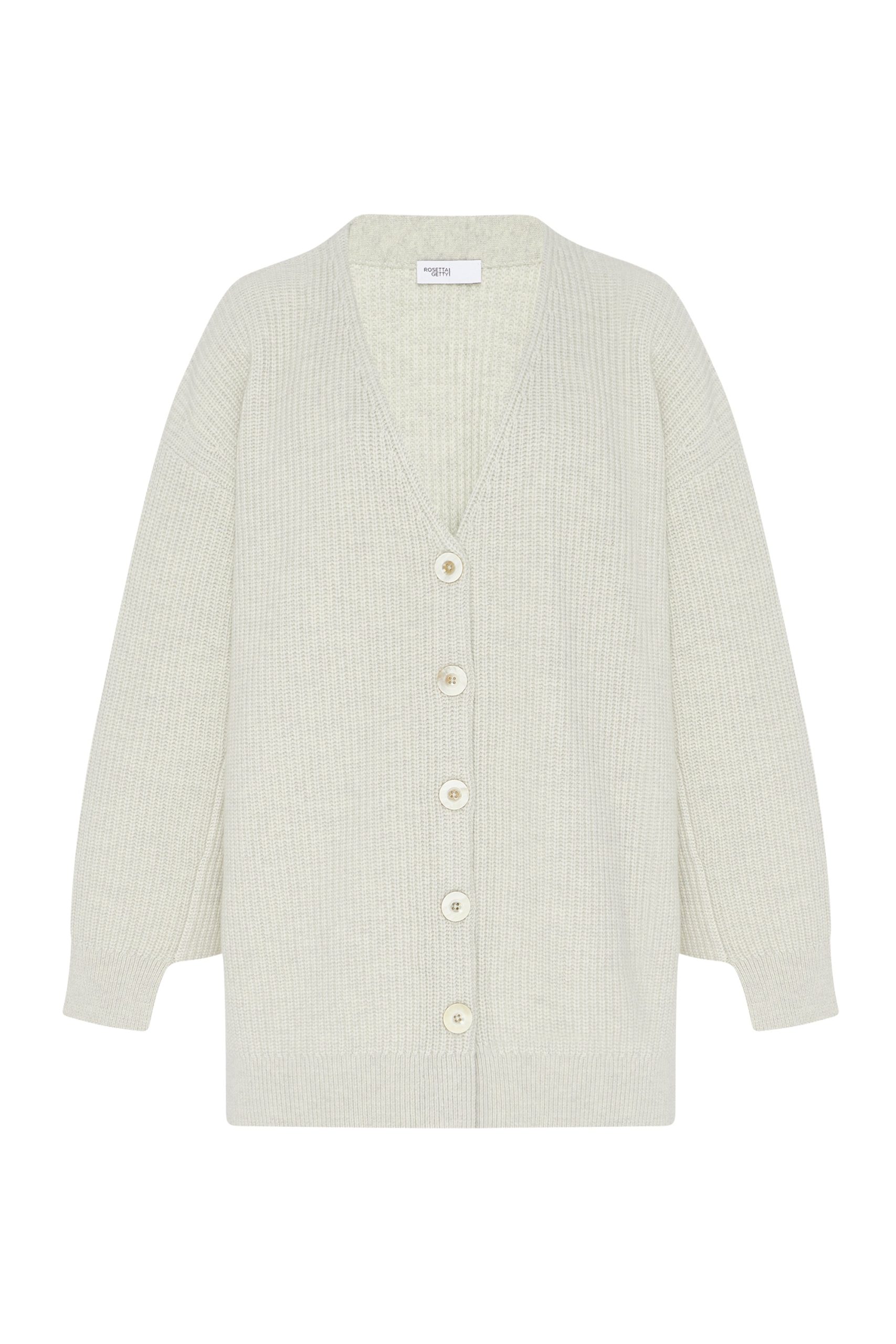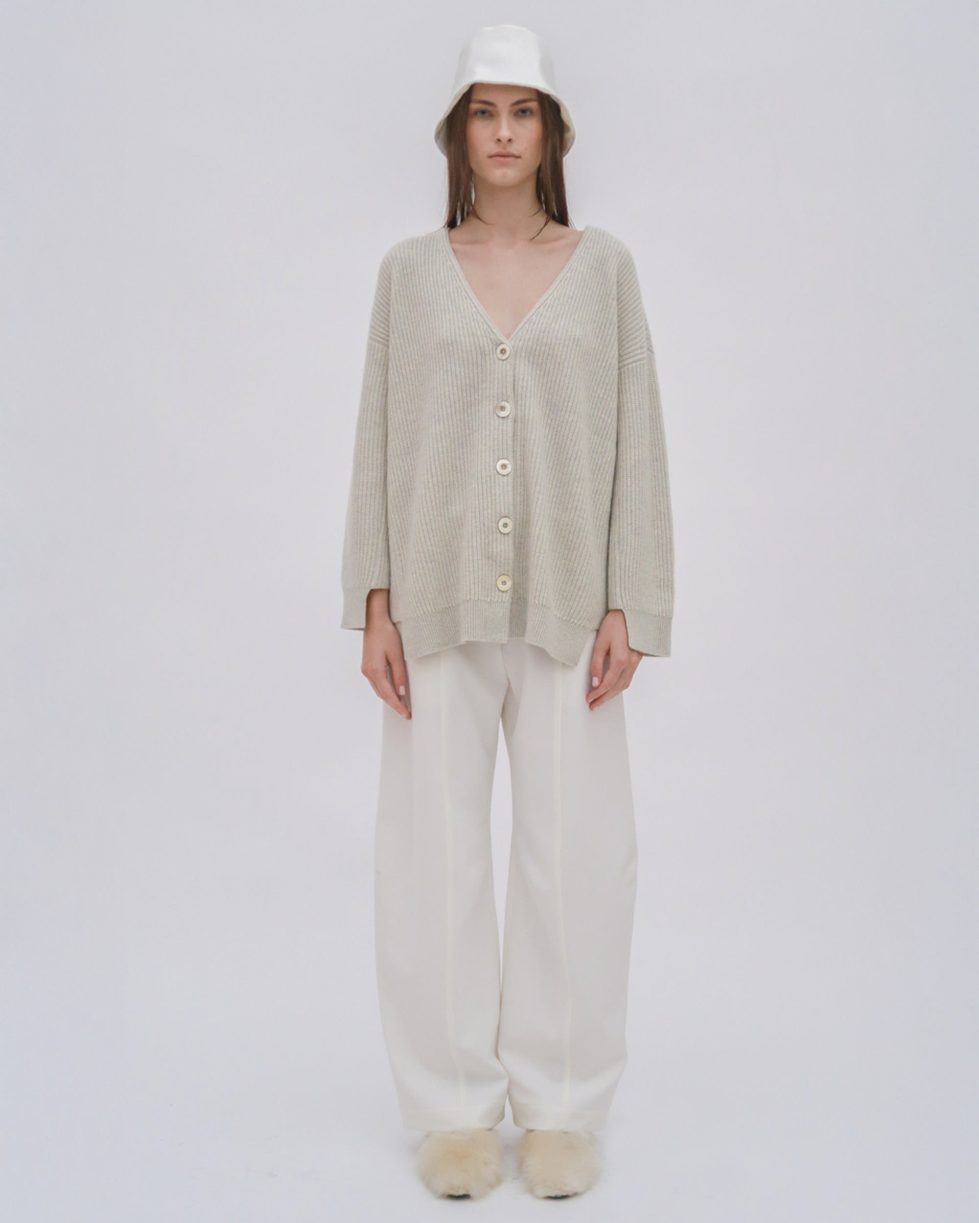 Knit of soft Mercerized Wool Cashmere, this staple cardigan silhouette is designed with an oversized fit and directional ribbing for structure and shape. Wing sleeves lend interest to the style, which features tonal buttons for a refined finish.