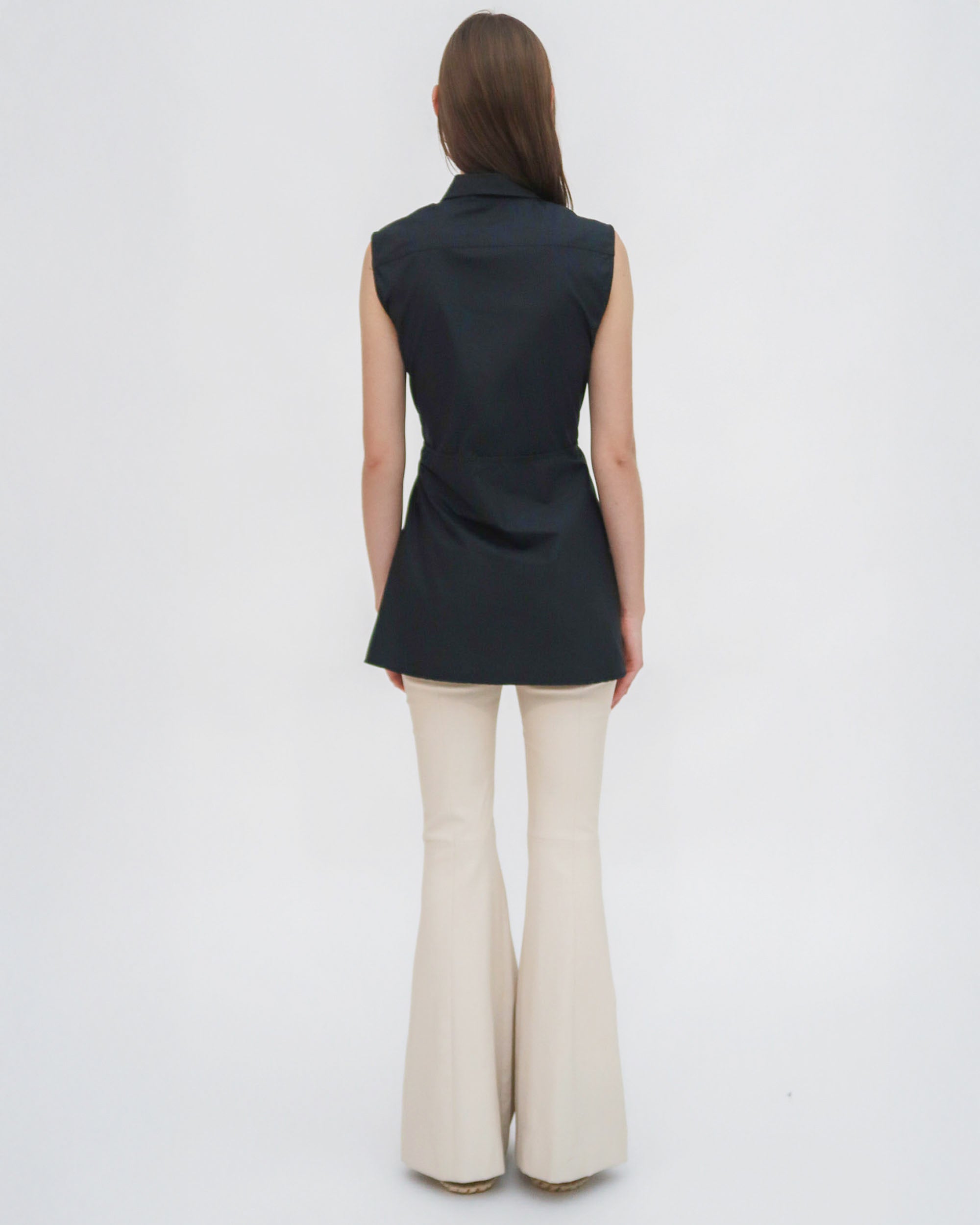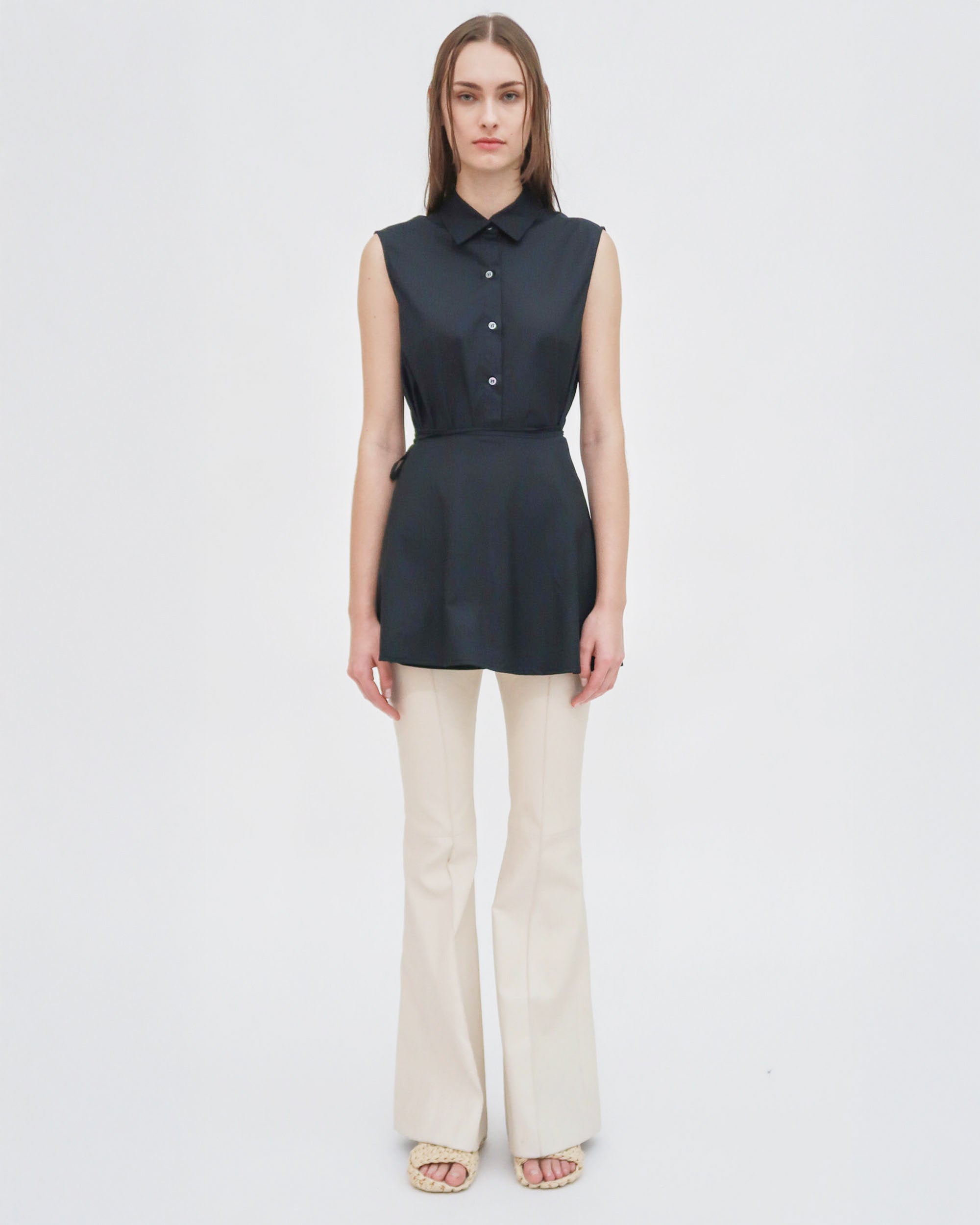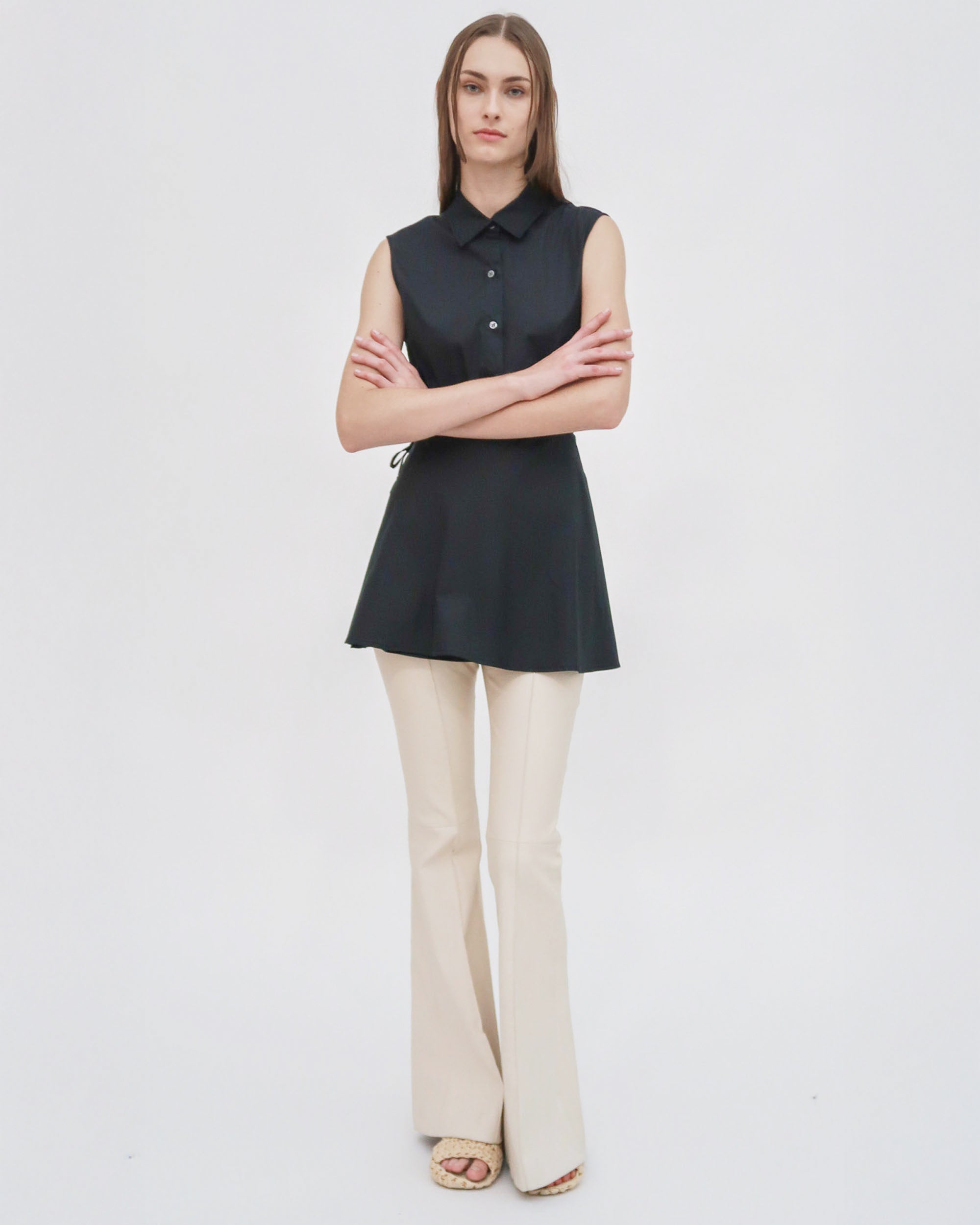 Apron silhouettes are one of the elements that have come to define the Rosetta Getty brand. Spring 25’s asymmetric style has a shorter length, offering versatile wear as a tunic, minidress, or longer top. Crafted of brand staple Stretch Cotton Poplin, it can be worn tied at the hip or left draped open for fluid movement.