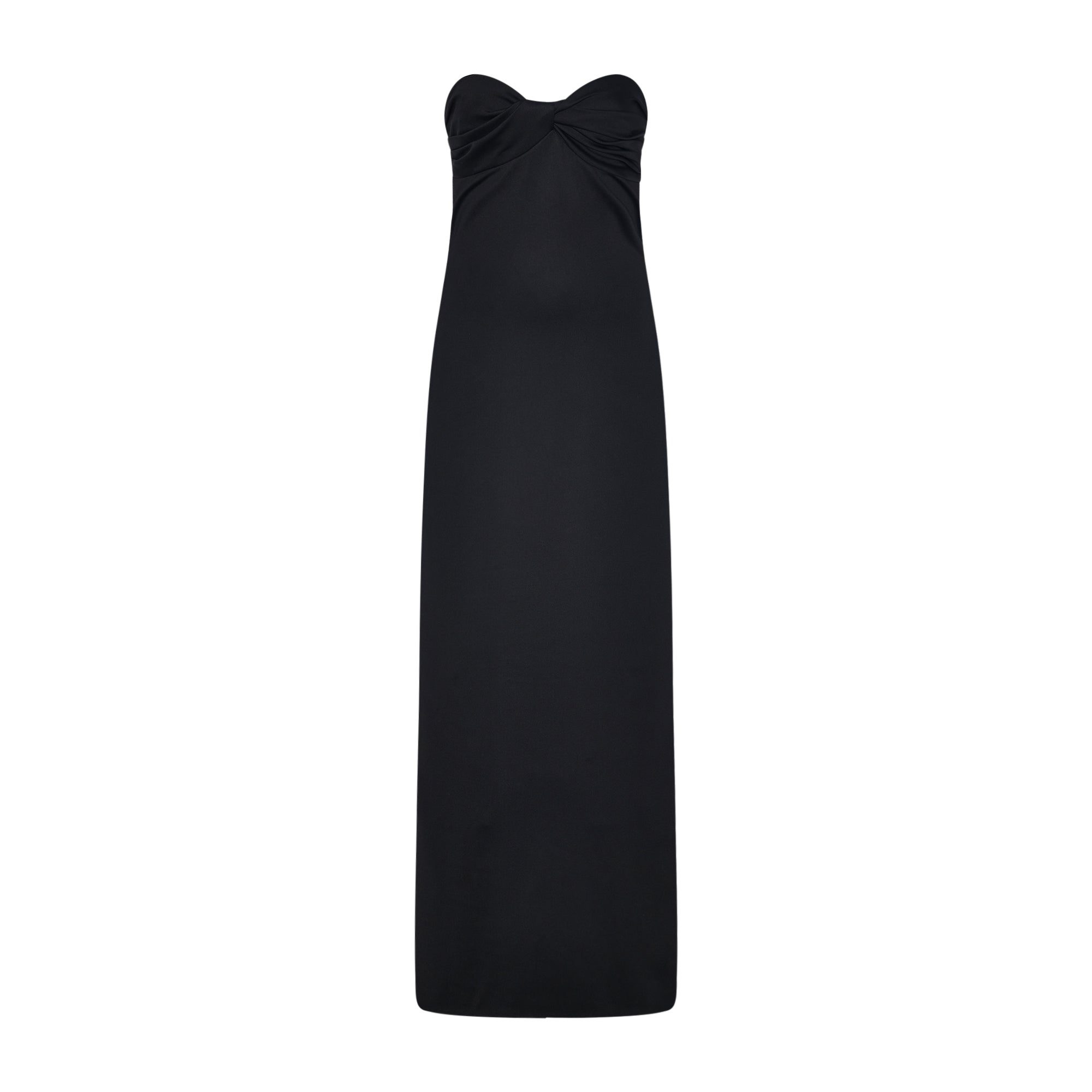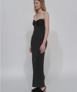 This new maxi dress features an elegant strapless column silhouette shaped by a sculptural twist at the center bust. The superb fit of the dress is enhanced by its Scuba Doubleknit fabrication, a signature material that is soft and supple with a technical finish.