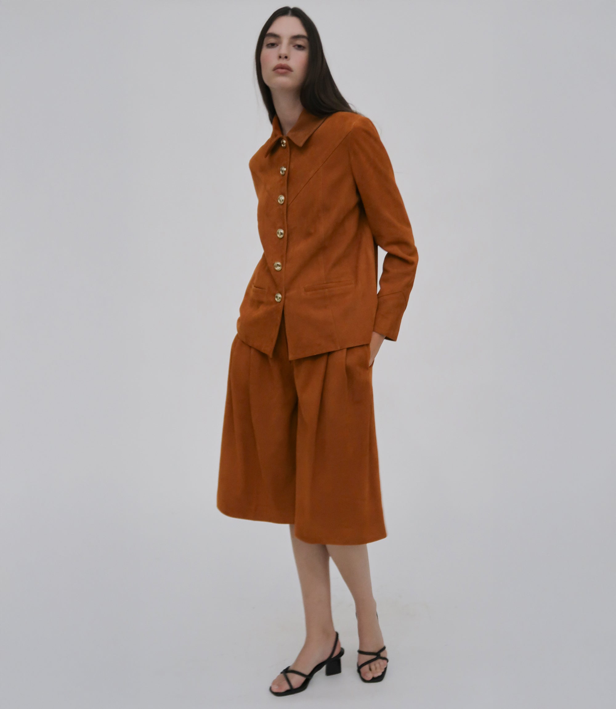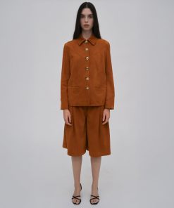 Rosetta Getty Women’s Wide Pleat Front Short | Cognac