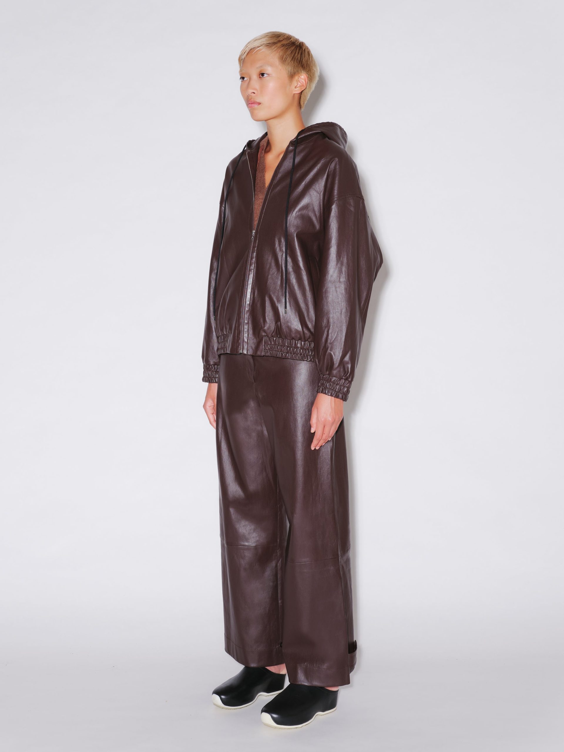A casual silhouette meets a luxe fabrication in this new style for Resort 24. Designed with a relaxed fit, the Zip-Up Hoodie Jacket is elevated by signature Stretch Plongé leather – imparting a lavish sensibility to the typically lax and sporty style.